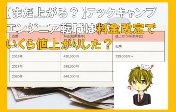 こんにちは!転職文系エンジニアのゆうきです。 というようにテックキャンプエンジニア転職がこれまでの料金改定によっていくら値上がりしたのか気になってはいませんか? 入会するか検討している間に料金改定されて値上がりしてしまっ…