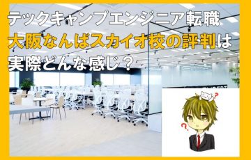 こんにちは!転職文系エンジニアのゆうきです。 というようにテックキャンプエンジニア転職大阪なんばスカイオ校の評判について調べてはいないでしょうか。 やはり実際に通っている人の生の評判を聞いてみないと不安ですよね・・・ と…